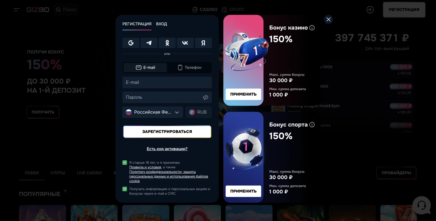 Присоединяйтесь к Gizbo Casino и получите щедрый бонус на первый депозит для яркой игры
